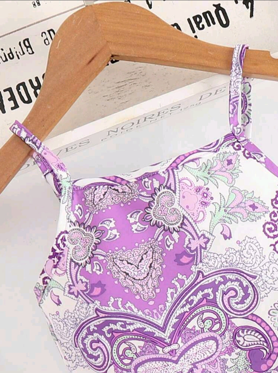 Purple Cami Open Back Top with High Waist Hipstar Flare Leg Pants